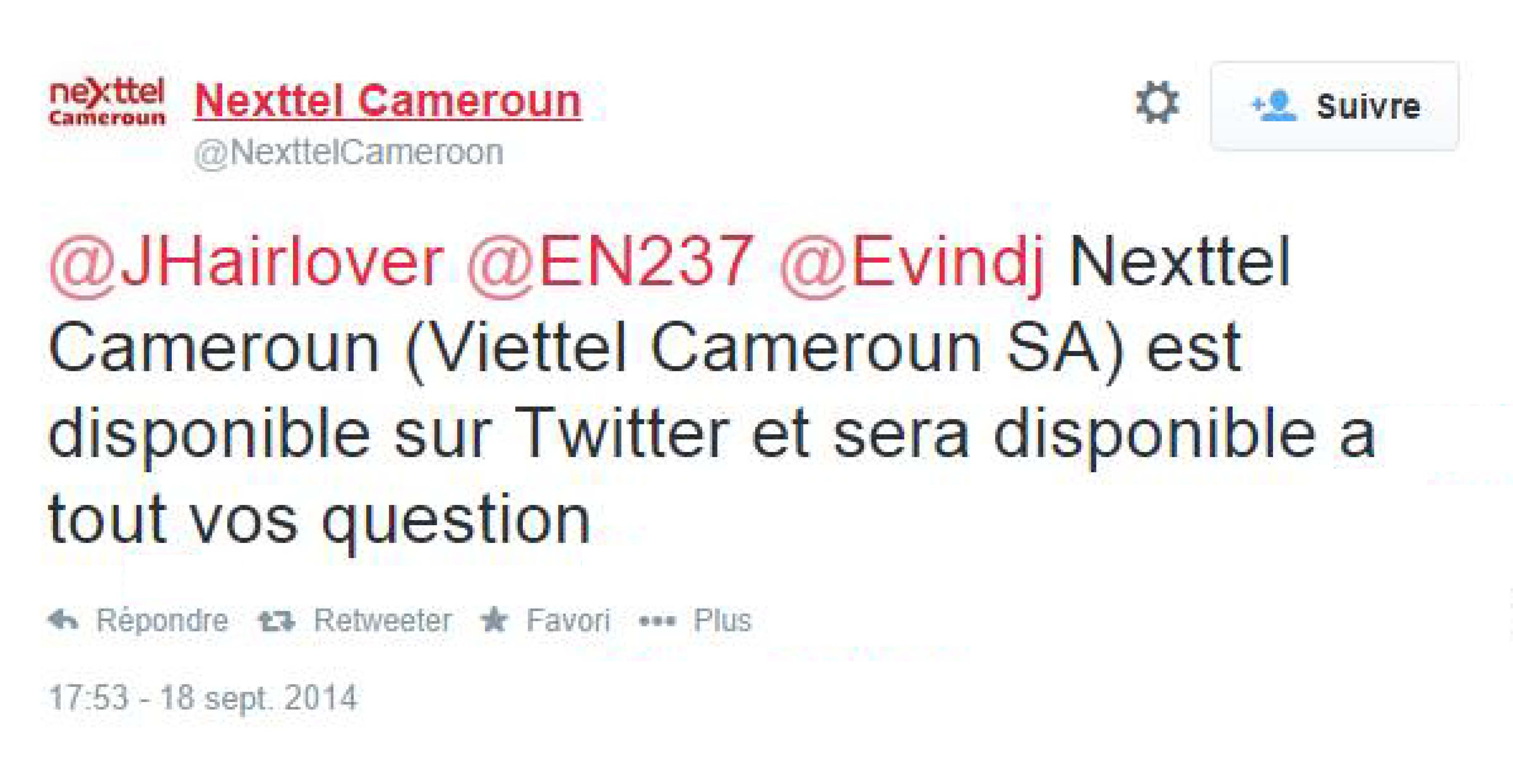 Aussi, Nexttel Cameroon prend le temps de répondre à ses abonnés.