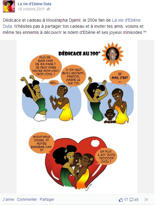 La bande dessinée « La vie d’Ébène Duta » (L.V.D.D) de Joëlle EBONGUE est une preuve de l’impact qu’offrent les réseaux sociaux sur des projets personnels. Et oui, encore une victoire du social-media qui montre ses opportunités non plus ludiques mais maintenant professionnelles.