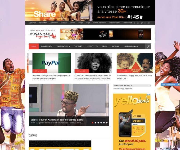 La particularité de « Je Wanda Magazine » est que c’est un site né d’une page Facebook et ce en novembre 2010. Nous parlons de culture, lifestyle, business, tech, people, des projets des jeunes… Ce qui nous tient à coeur également c’est de mettre les talents africains en avant quelque soit le domaine afin de représenter une Afrique dynamique et optimiste.