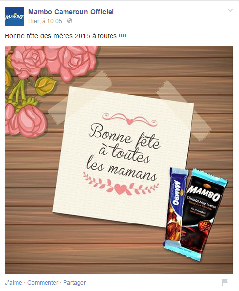 9 réactions des CM camerounais pour la Fête des mères 2015. Hier, les pays francophones ont célébré à leur tour la Fête des mères 2015, et c’était l’occasion pour nous Community Managers camerounais de faire passer un message à ce propos. J’en ai sélectionné 9 pour vous : CHEDJOU KAMDEM (CK) CM is the new SEXY - Share it ! Cliquez pour partager sur Facebook(ouvre dans une nouvelle fenêtre) Facebook Cliquer pour partager sur X(ouvre dans une nouvelle fenêtre) X Cliquez pour partager sur WhatsApp(ouvre dans une nouvelle fenêtre) WhatsApp Cliquez pour partager sur LinkedIn(ouvre dans une nouvelle fenêtre) LinkedIn Cliquer pour envoyer un lien par e-mail à un ami(ouvre dans une nouvelle fenêtre) E-mail Plus Cliquer pour imprimer(ouvre dans une nouvelle fenêtre) Imprimer Cliquez pour partager sur Reddit(ouvre dans une nouvelle fenêtre) Reddit Cliquez pour partager sur Tumblr(ouvre dans une nouvelle fenêtre) Tumblr Cliquez pour partager sur Pinterest(ouvre dans une nouvelle fenêtre) Pinterest Cliquez pour partager sur Pocket(ouvre dans une nouvelle fenêtre) Pocket Cliquez pour partager sur Telegram(ouvre dans une nouvelle fenêtre) Telegram J’aime chargement… Auteur : Chedjou Kamdem Social Media Cook Voir tous les articles par Chedjou Kamdem
