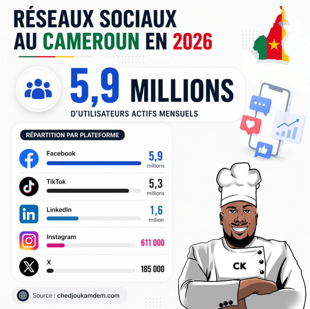 Le paysage des réseaux sociaux au Cameroun en 2026 est marqué par une forte domination de Facebook et TikTok, accompagnée d’une montée progressive des plateformes professionnelles comme LinkedIn.