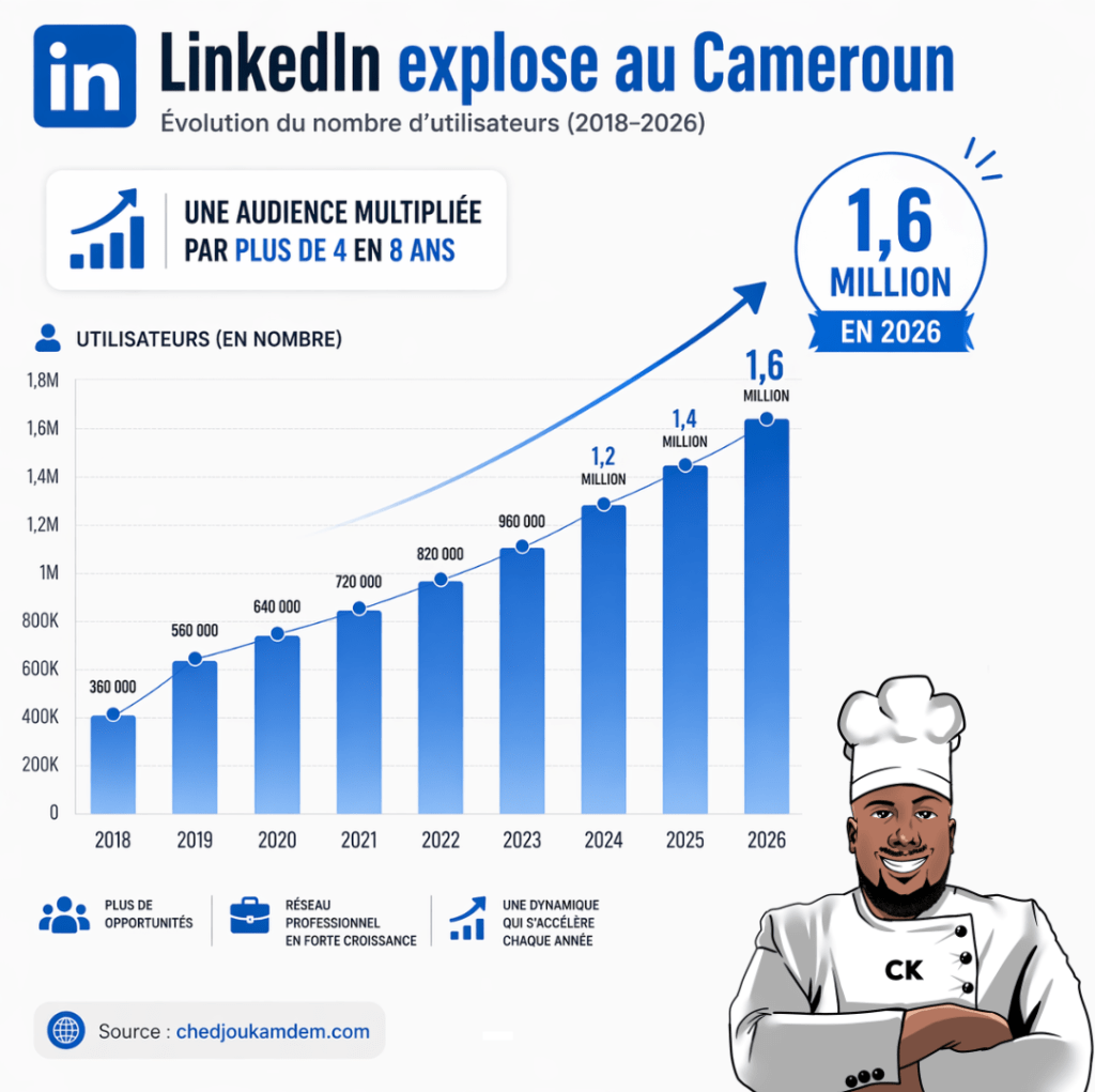 LinkedIn confirme son ascension au Cameroun avec 1,6 million d’utilisateurs en 2026, un chiffre qui illustre l’importance croissante du réseau dans le paysage digital professionnel.