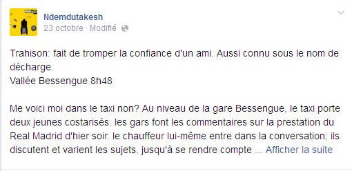 Autre page qui a expérimenté la bande dessinée : NDEMDUTAKESH.