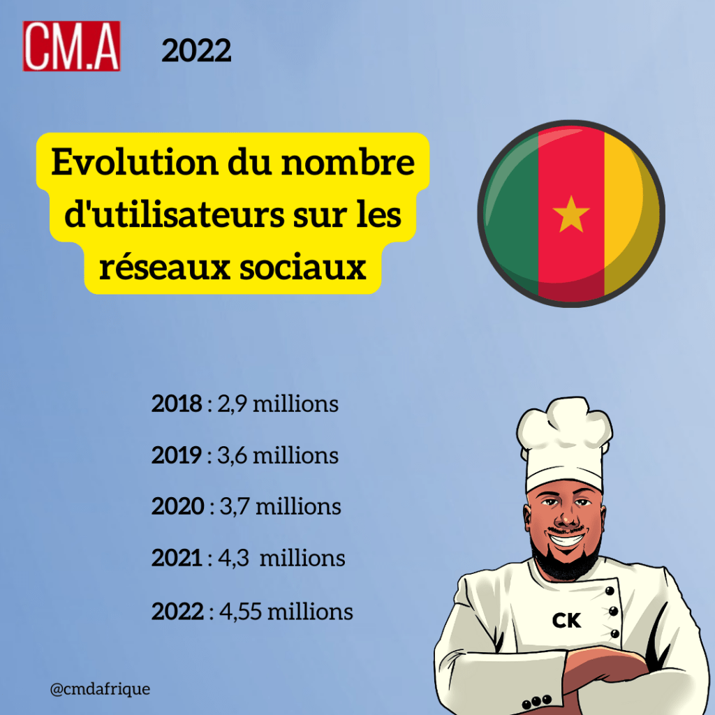 Dès la fin des années 2000, les camerounais ont vu leur quotidien bouleversé avec l’arrivée des réseaux sociaux comme Facebook ou encore Hi5. Depuis cette période, ces plateformes n’ont cessé de croître en terme d’utilisateurs et nous nous proposons de faire un focus sur les cinq dernières années à savoir 2018, 2019, 2020, 2021 et 2022.