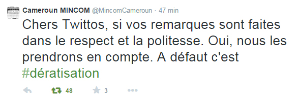 Mais au lieu de suivre ces conseils, le CM du MINCOM a procédé à un blocage de plusieurs abonnés sur Twitter. Pas terrible comme réaction car là on se prive de relais d’information importants de la communauté en ligne.
