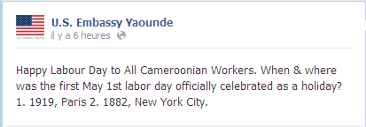 Image précédente Image suivante Us embassy Yaoundé En savoir plus sur Le Storytelling du Community Management au Cameroun Abonnez-vous pour recevoir les derniers articles par e-mail. Saisissez votre adresse e-mail… Abonnez-vous CM is the new SEXY - Share it ! Partager sur Facebook(ouvre dans une nouvelle fenêtre) Facebook Partager sur X(ouvre dans une nouvelle fenêtre) X Partager sur WhatsApp(ouvre dans une nouvelle fenêtre) WhatsApp Partager sur LinkedIn(ouvre dans une nouvelle fenêtre) LinkedIn Envoyer un lien par e-mail à un ami(ouvre dans une nouvelle fenêtre) E-mail Plus Imprimer(ouvre dans une nouvelle fenêtre) Imprimer Partager sur Reddit(ouvre dans une nouvelle fenêtre) Reddit Partager sur Tumblr(ouvre dans une nouvelle fenêtre) Tumblr Partager sur Pinterest(ouvre dans une nouvelle fenêtre) Pinterest Partager sur Telegram(ouvre dans une nouvelle fenêtre) Telegram J’aime chargement…